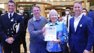 Virgin Voyages described the mermaid as having "a fiery red tale and resolute stance inspired by Rosie the Riveter." It was created by artist Jodie Herrera.